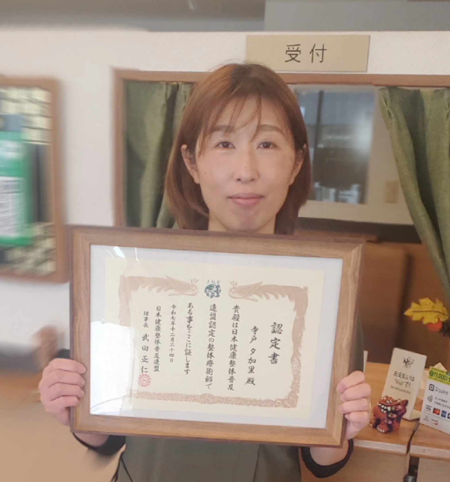 遅ればせながら当院の整体師「寺戸夕加里」が昨年末より日本健康整体普及連盟から認定を受けまして”整体療術師”となりましたことをご報告致します。こちらを記念しまして今年当院では